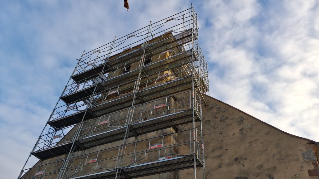 Les travaux, débutés en novembre se prolongeront sur cet hiver. Le clocher entièrement refait pourra accueillir la cloche en cours de rénovation par l’entreprise Heur-Tech.
